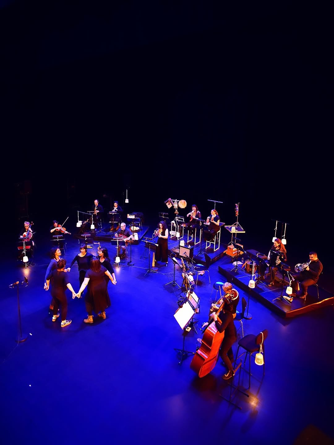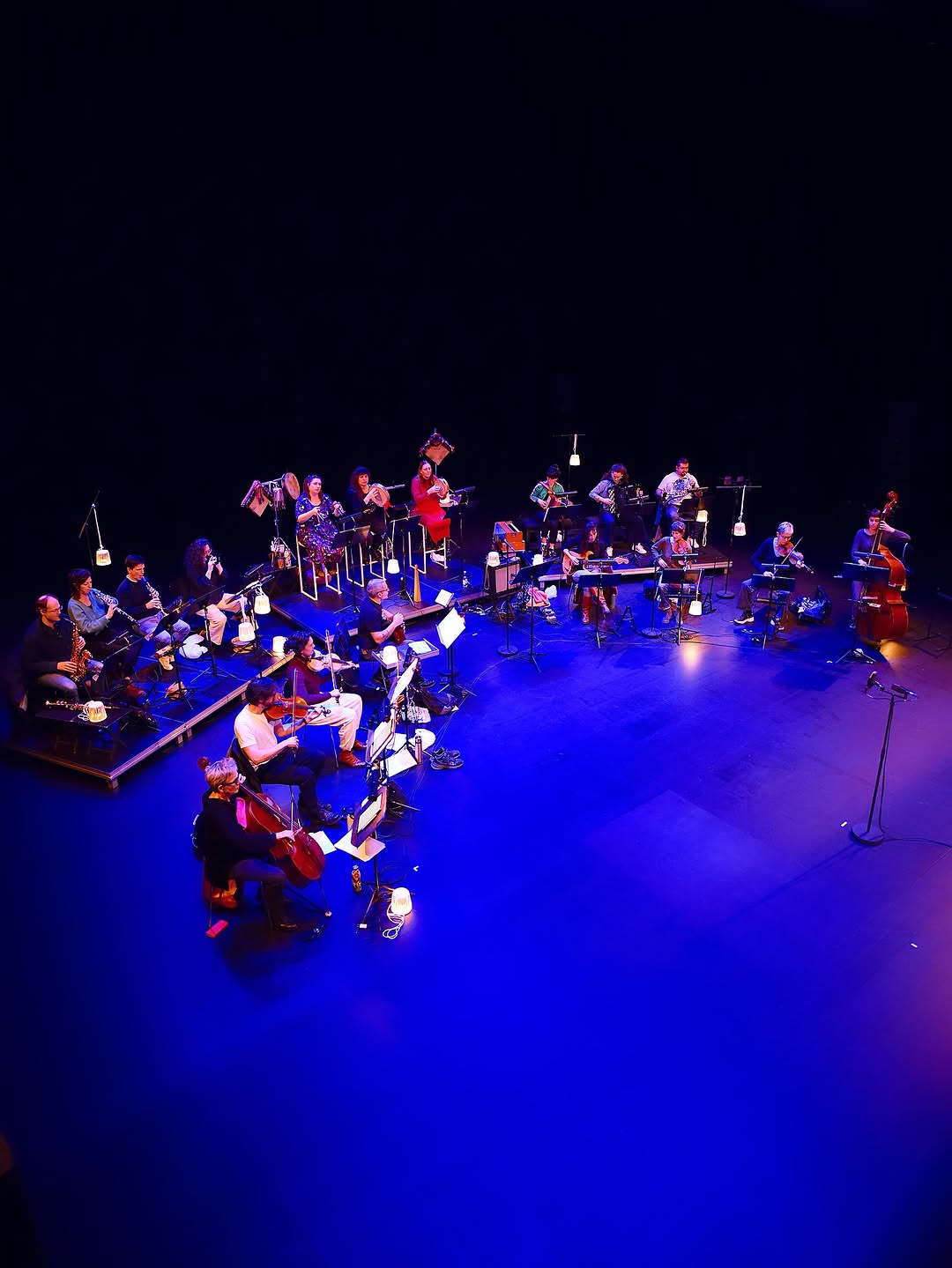 Un processus d’exploration poétique et foisonnant qui fera dialoguer chants, danses et créations instrumentales, porté avec le concours de 8 musiciennes traditionnelles et de 8 interprètes de l’ensemble Ars Nova. Une dérive sonore des rives des musiques traditionnelles à celles des musiques contemporaines.