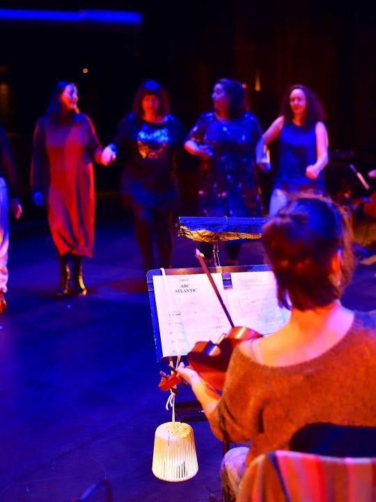 La rencontre avec l’ensemble Ars Nova m’a ouvert ces lignes de fuite qui me permettent d’envisager une création vocale et instrumentale réunissant des chanteuses traditionnelles et un ensemble de musique contemporaine : « ArC AtlantiC », un processus exploratoire qui prend appui sur des airs populaires collectés auprès des 8 cultures endémiques longeant le Golfe de Gascogne. La chanson vernaculaire n’est pas ici à la marge de la composition. Elle n’est pas juste une couleur exotique, un prétexte romantique ou une anecdote folklorique, elle en est l’épicentre. Une matière à incarner, à sublimer. […]